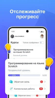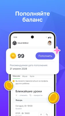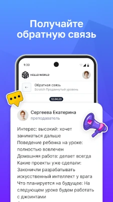 - Получать обратную связь по обучению от преподавателя курса; - Следить за успеваемостью ребёнка; - Управлять расписанием ребёнка; - Отслеживать прогресс прохождения курса; - Записаться на новый курс; - Получить сертификат об окончании учебного курса.