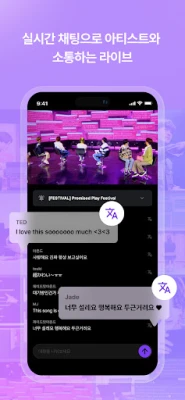 라이브 채팅으로 아티스트와 생생하게 소통해요.