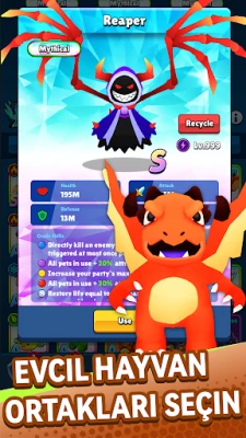 Benzersiz ve güçlü evcil hayvanları topla, savaşlarda yardımını al.