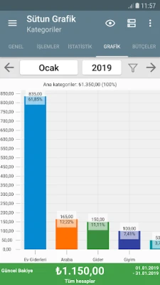 Bu uygulama aynı zamanda bilgilerinizi grafik üzerinde de sunarak gelecek aylar için yapacağınız bütçe planlamalarınızı kolaylaştırır.