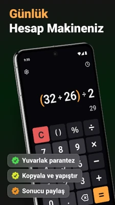 • Gelişmiş hesap makinesi: karekökler, kuvvetler, üstel işlemler, yüzdeler ve daha fazlası.