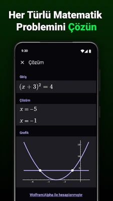 • Denklem çözücü: karekök, kübik denklemler, eşitsizlikler ve daha fazlası.