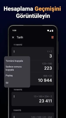 • Geçmiş ve notları olan hesap makinesi: Geçmiş hesaplamaları kaydedin ve yeniden kullanım için notlar ekleyin.
