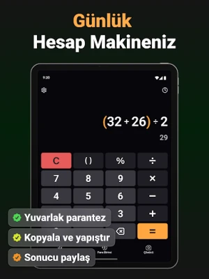 • Fotoğraf hesap makinesi: Problemleri hızlıca çözmek için fotoğraf çekin.