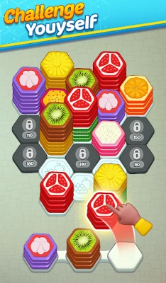 Unlock new challenges and fruit hexagons as you progress in the game.