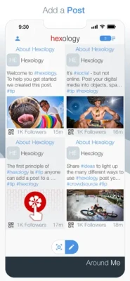 Post your digital media into the world around you to enrich the physical world and access local community wherever you go, Hexology brings your digital world and physical world together as one!