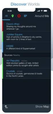 Compose a message, but instead of posting your message online, post it into objects, spaces and places, for people to discover whenever they are nearby.