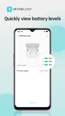 You can quickly view battery levels of your left and right earbuds, modify the headset operation and headset firmware upgrade. Pairing your earbuds with your phone is a snap with Hey Melody. Notes: 1. If there is no related function after downloading the app, please update the App version and try again. 2. If your phone supported headset's feature settings in the phone setting you don't need to install the app.