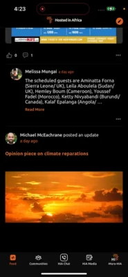 The HiA App has all the usual social networking functions, so go ahead, enjoy making connections via the membership features, join existing community groups or start your own; take part the in discussion fora and of course, message to your hearts content. And stay up to date with news and views from across Global Africa.