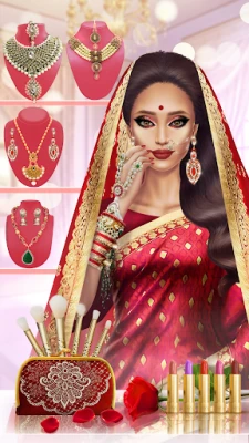 Artık defile uzmanı sizsiniz! Çok çeşitli geleneksel Hint kıyafetleri (kraliyet sarilerinden şerwanilerden lehengalara kadar), takılar (ışıltılı bilezikler, kolyeler ve küpeler) ve makyaj malzemeleriyle yaratıcılığınızı ortaya çıkarın ve müstakbel geline en zarif kıyafetleri giydirin . Rüya gibi bir düğün için bir şaheser yaratın!