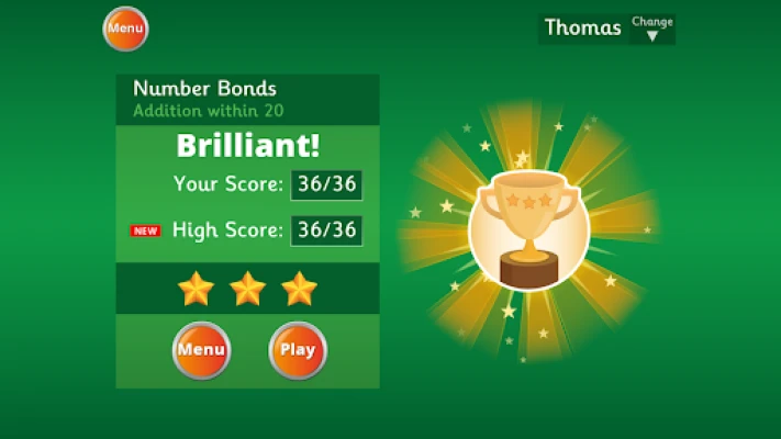 After each game, the score achieved is displayed along with the child's high score. Bronze, silver or gold stars and trophies are awarded depending on the score achieved in each game.