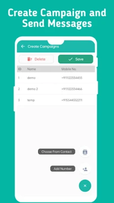 You can import from Contacts and add manually numbers and create campaigns to send messages.