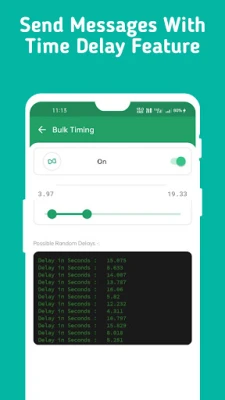 Send messages in delay with Bulk Timing feature. just choose min max delay and send message between random minimum maximum seconds