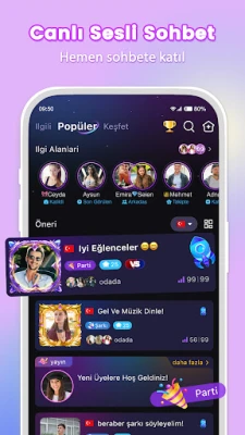 Bir grup sohbet odasına katılın ve arkadaşlarınızla canlı partinin keyfini çıkarın. Hiya, ilginç insanlarla kolayca konuşmanızı sağlayan harika bir uygulamadır. Tutkunuza ne olursa olsun, size uygun bir sohbet odamız var.