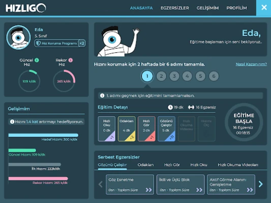 Hızlıgo’da okuma ve anlama hızını iki katına çıkaran 20 farklı türde egzersiz bulunmaktadır: