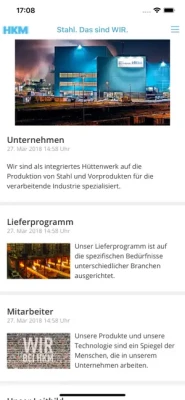 Diese App bietet aktuelle Informationen und Neuigkeiten über die Hüttenwerke Krupp Mannesmann GmbH. Mit Benachrichtigungen sind Sie somit immer und überall auf dem neuesten Stand. Darüber hinaus erhalten Sie folgende Funktionen: Speiseplan, Zufriedenheitsbarometer, Mitarbeiterzeitschriften und Informationsschreiben in digitaler Form, bereichsspezifische Meldungen, IT Meldungen u.v.m.