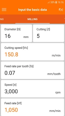 You can calculate the speed and feed rate for the production methods of turning, drilling and milling by entering the corresponding parameters, as well as subsequently readjusting them to the machine parameters.