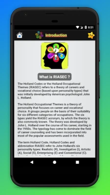 🌷The term Holland Code, Holland Codes and abbreviation RIASEC refer to John Holland's six personality types: Realistic (R), Investigative (I), Artistic (A), Social (S), Enterprising (E) and Conventional (C). According to Holland’s Theory of Career Choice, choosing work or an education program environment that matches, or is similar to your personality, will most likely lead to success and satisfaction.