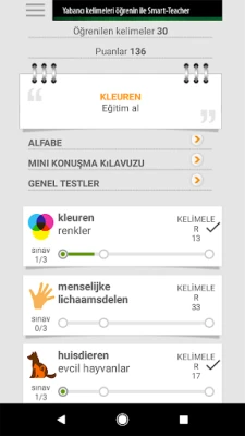 - Kelimelerin bilgisinin test edilmesi eğlenceli ve basit testlerle gerçekleşir: