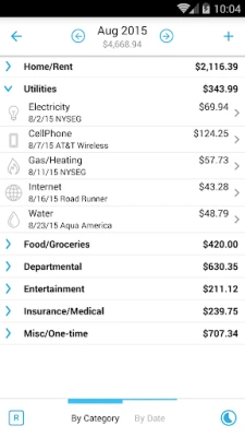 ✓ Browse expense entries by month, by category/date with the ability to drill-down