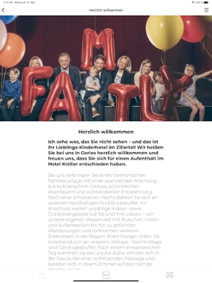 Entdecken Sie auf einen Blick alle wichtigen Infos über unser familiengeführtes Kinderhotel in Österreich: Details zur An- und Abreise, kulinarische Highlights, Familien- und Kinderangebote, Öffnungszeiten von Restaurant und Wellnessbereich, Veranstaltungen, unsere aktuelle Abendpost sowie den Reiseführer Zillertal zur Inspiration für Ihre Freizeitgestaltung.