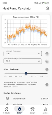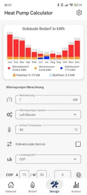 Der HP Calculator berechnet die Heiz und Kühllast deines Gebäudes nach der DIN EN 12831-1. Außerdem wird der Wärme und Kältebedarf über das Jahr berechnet.