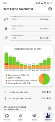 Anschließend kann die Auslegung der Wärmepumpe erfolgen und die elektrischen Kosten sowie die Amortisationszeit des neuen Heizungssystems berechnet werden.