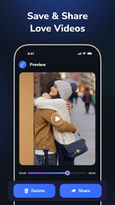 Transform your moments into heartwarming and romantic videos with Hug Kiss AI Video Maker. This app lets you create stunning AI-generated videos that bring emotions like love, care, and affection to life. From sweet hugs to romantic kisses, you can turn your photos into expressive short clips within seconds.