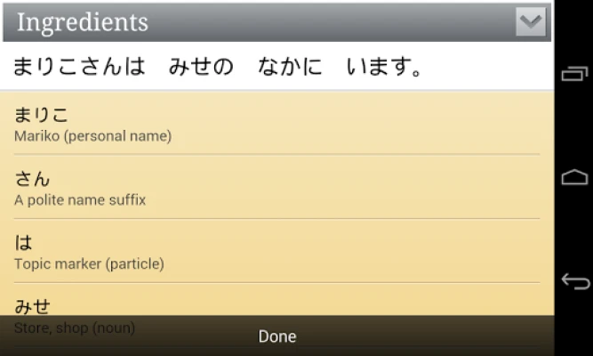 * Ingredients(TM) example sentence breakdowns on every example sentence for total clarity