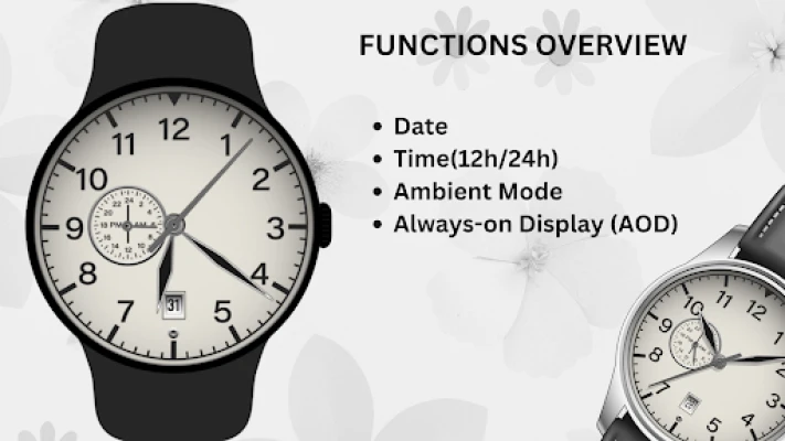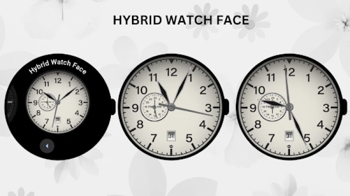 Experience the timeless elegance of analog design combined with the convenience of digital displays with the Hybrid Classic Watch Face, bringing sophistication and functionality to your Wear OS device.