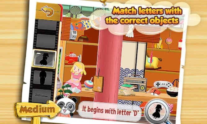 Start your journey in Hawaii, collecting souvenirs and coins from each completed task and use those to unlock additional exotic locations. At the easy level young children can practice object identification and word association. As they advance, challenge them to find objects associated with letters helping to unlock new locations. Find a fan in Japan, or a lantern in Yellowstone. Maybe even a lizard in Egypt! Each locale is beautifully animated with ample visual and spoken instruction and a unique catchy soundtrack.