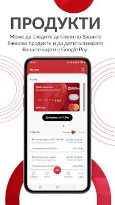 • Влизане в приложението – след първи вход с потребителско име можете да въведете код за достъп (ПИН) или вход с биометрични данни (налични и за двете, поддържани операционни системи)