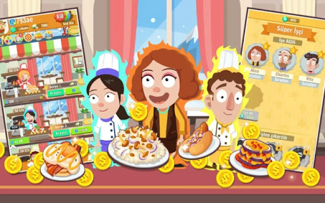 🌭Restoranı yükselterek, yeni tarifleri araştırarak, haritayı genişleterek kendi restoran imparatorluğunuzu adım adım kuracaksınız.🌭