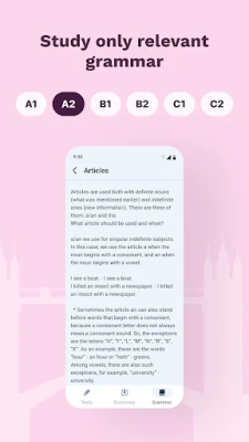 For complete preparation coverage, we've added a grammar topics section so you can refresh your knowledge at any time. By taking the tests and studying grammar, you move step by step closer to your desired result in the exam. Create a comfortable and effective environment for learning English with our app that is always at your fingertips. Download it now and start your journey to IELTS certification!