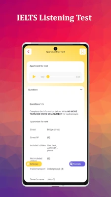- IELTS Listening Practice: Enhance your listening skills with high-quality audio tracks designed to mirror real IELTS exam conditions.