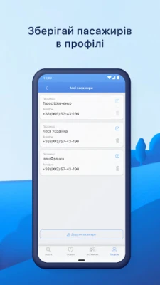 - додаєте пасажирів, в подальшому вони зберігаються і заповнюються автоматично при повторній покупці;
