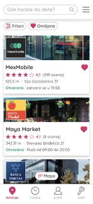 implemented, and users can filter locations by their preferences (type of facility,