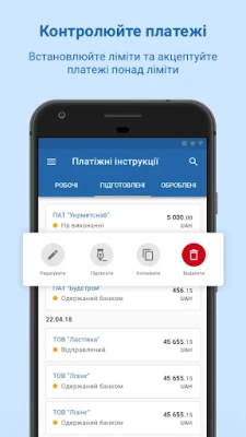 Крім того, в додатку реалізований сервіс акцептування відповідальним співробітником платежів в національній валюті, створених іншими співробітниками організації.