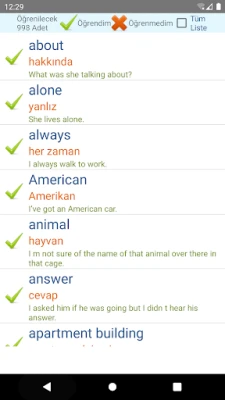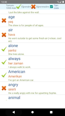 İngilizcede bulunan temel 1000 kelimenin anlamı, örnek cümle ve ezber listesi. İngilzce-Türkçe karşılıkları çevirisi ile ingilizceyi kolayca öğrenin. Günlük yaşamda en çok kullanılan kelimeler ile sınavlarda ve konuşmalarda ilerleme kaydedebilirsiniz.