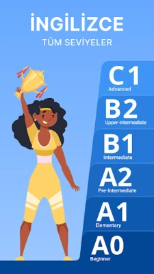 Gelişmiş kullanıcılar için bile İngilizce öğrenmek artık düşündüğünüzden daha kolay! Tüm CEFR seviyeleriyle uyumlu olan uygulamamızla öğrenmeye başlayın: A0, A1, A2, B1, B2, C1 ve C2.