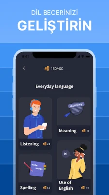 dil öğrenmek ve dil öğrenimi sürecini eğlenceli hale getiren oyun mekanikleriyle öğrendiklerinizi pekiştirin.