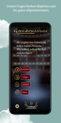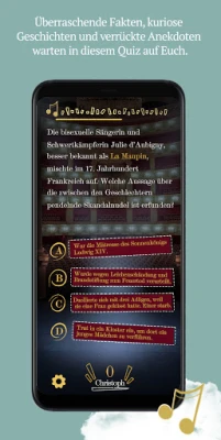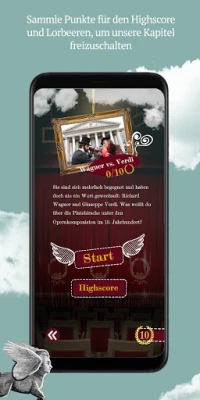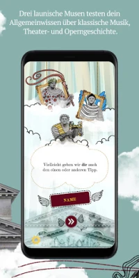 Überraschende Fakten, kuriose Geschichten und verrückte Anekdoten warten in diesem Quiz über die Welt der Oper und der klassischen Musik auf Euch. Drei launische Musen testen Euer Allgemeinwissen über klassische Musik, Theatergeschichte und Oper – und belohnen Euch am Ende mit Lorbeeren und weiteren Abenteuern. Egal, ob Opernneuling und eingefleischter Klassikfan, unser Quiz benötigt vor allem einen wachen Geist und Kombinationsgeschick. Drei verschiedene Spielmodi sorgen für Abwechslung und langanhaltenden Spielspaß! Erreichst du den Opernolymp?