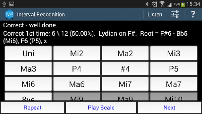 Continuous Play - repeat question a set number of times then display the answer before moving on to the next one. Optional text to speech for announcing the root note and answers. Basic speech recognition for entirely hands free use.