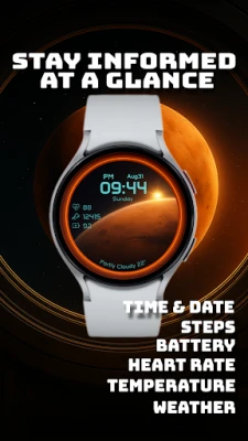 IntoSpace is a stunning Wear OS watch face inspired by the wonders of space travel. Featuring vibrant planetary backgrounds, real-time weather updates, step count, heart rate, battery level, and temperature, it keeps you informed at a glance. Two unique styles and Always-On Display (AOD) mode offer both beauty and efficiency. Perfect for Galaxy Watch Ultra and other Wear OS devices, IntoSpace turns your smartwatch into a window to the cosmos.