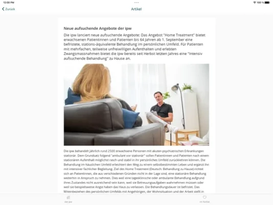 Die App informiert Patientinnen und Patienten, Netzwerkpartner, Mitarbeitende und interessierte Menschen aktuell und unkompliziert über Neues aus der ipw.