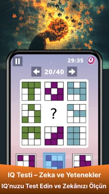 Bu IQ güçlendirici uygulama zekanızı artıracak ve mantık bulmacaları ile beyin oyunlarını ücretsiz olarak çözebileceğiniz bir antrenman sağlar.
