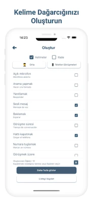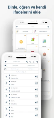 Ev, iş, seyahat ve daha fazlası için uygun ifadelerle her zaman elinizin altında doğru kelimeler olacak. İster selamlaşma, ister yemek yeme, yol tarifi isteme veya sosyal ortamlarda gezinme olsun, uygulamamız size güvenle iletişim kurmanız için gerekli donanımı sağlar.