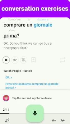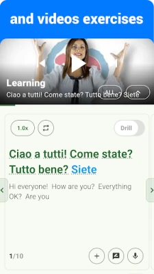 + Speaking and recording: listen and repeat after native Italian speakers, then start recording and replay your speech later.