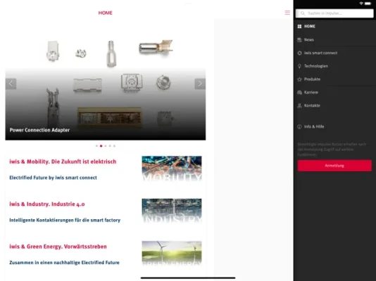 Electrified Future, Industrie 4.0, oder Sustainability.Mit iwis smart connect haben sie einen proaktiven Lösungspartner an Ihrer Seite, welcher die Zukunftsbranchen genau kennt und somit als langfristiger Lieferant oder als attraktiver Arbeitgeber neue Trends setzt und Sicherheit bietet.Mit impulse werden Sie über spannende Neuerungen oder wichtigen Ereignissen sofort informiert und werden somit ein Teil unserer Welt. Klar, verständlich & informativ.Außerdem erhalten Sie in der App eine Übersicht unserer vielseitigen Produkte, können nach unseren Technologien suchen oder bekommen einen Überblick über unsere Stellenangebote und Ansprechpartner.„Wir bewegen die Welt" – jederzeit und für die Hosentasche.