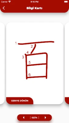 • Hafızanızı test etmek için flash kartı hızlıca kaydırarak Kanji alıştırması yapın.